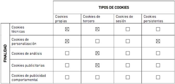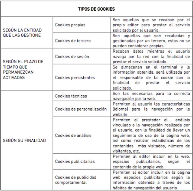 La información que le proporcionamos a continuación, le ayudará a comprender los diferentes tipos de cookies: